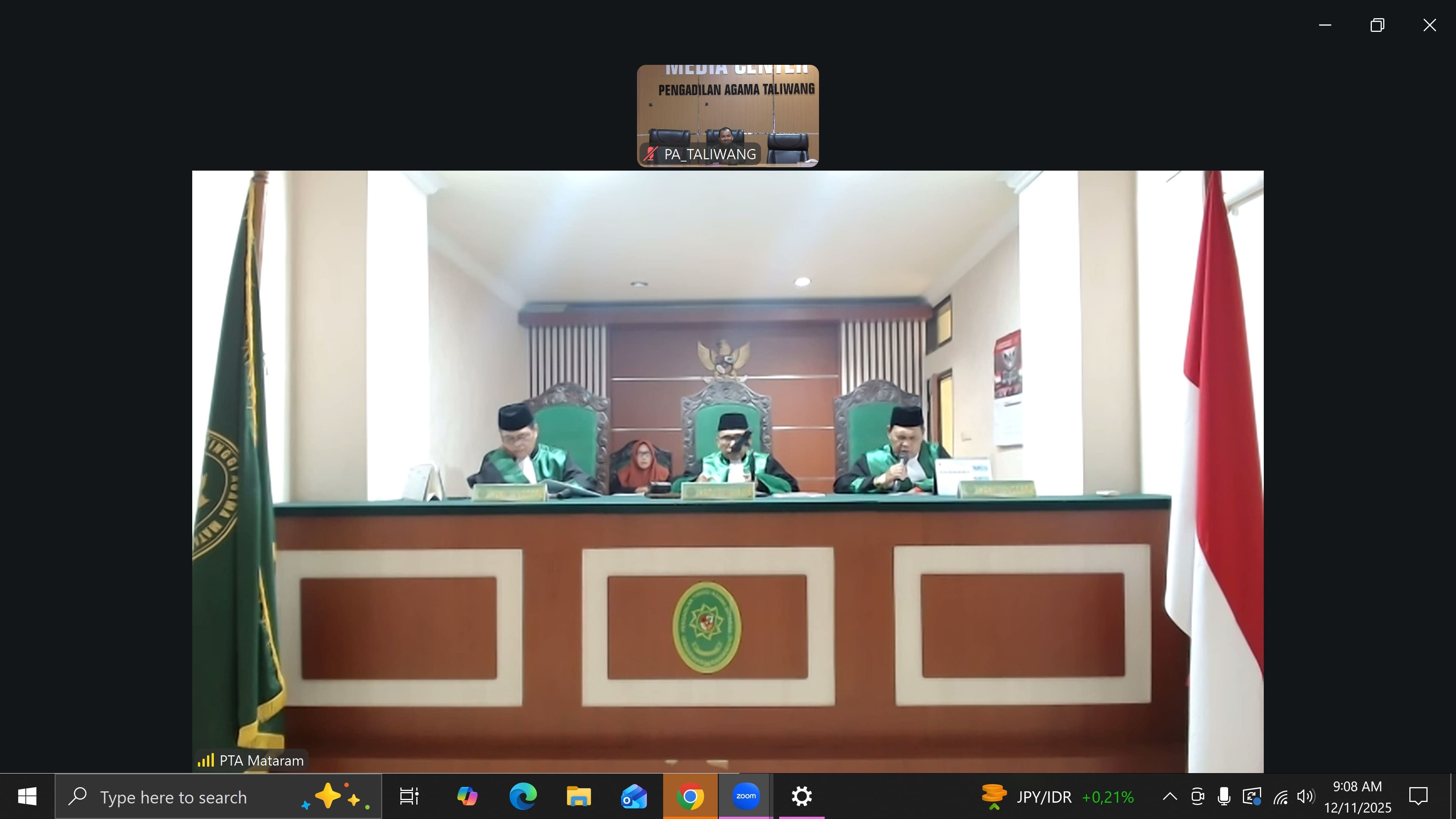 Taliwang, 11 Desember 2025 — Pengadilan Agama Taliwang mengikuti sidang pembacaan putusan perkara banding oleh Pengadilan Tinggi Agama (PTA) Mataram yang digelar secara daring pada Kamis, 11 Desember 2025 pukul 09.00 WITA. Kegiatan ini berlangsung di Media Center Pengadilan Agama Taliwang melalui platform Zoom Meeting.