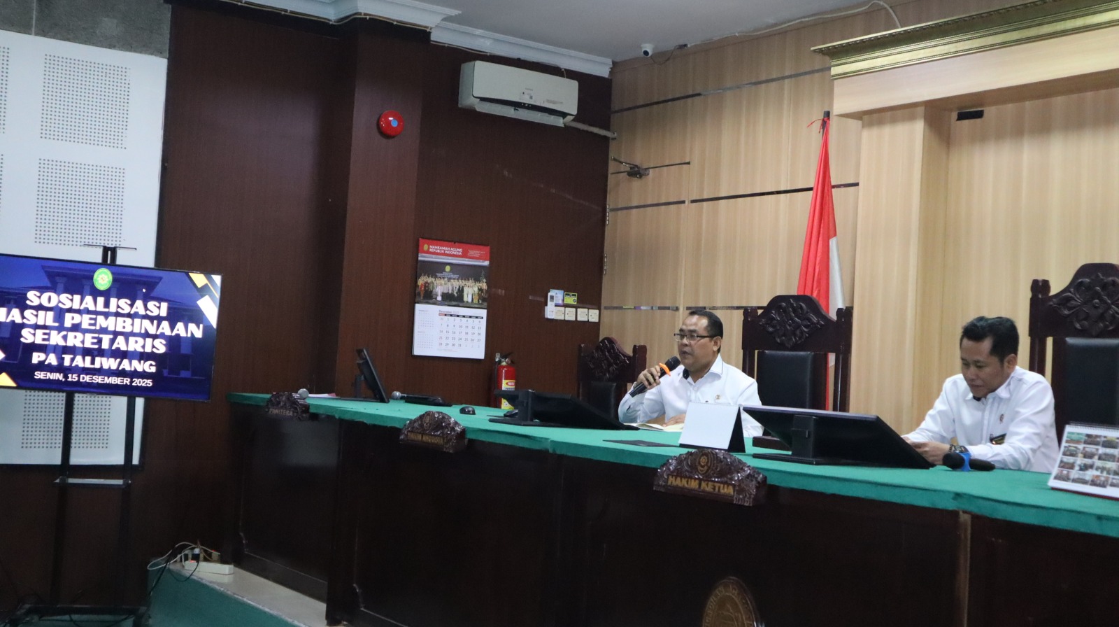 Taliwang (15/12/2025) – Pengadilan Agama Taliwang melaksanakan kegiatan Sosialisasi Hasil Pembinaan Administrasi Kesekretariatan pada Senin, 15 Desember 2025, bertempat di ruang sidang Pengadilan Agama Taliwang. Kegiatan ini merupakan tindak lanjut dari Pembinaan Administrasi Kesekretariatan yang diselenggarakan oleh Wakil Ketua Mahkamah Agung Republik Indonesia Bidang Non Yudisial.