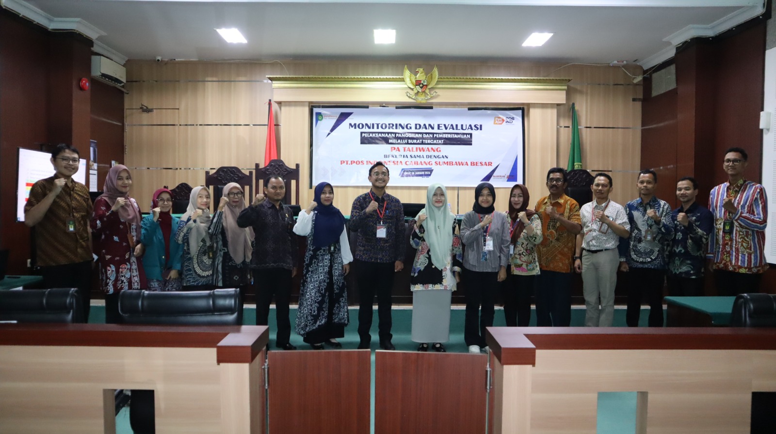 Kepala PT. Pos Indonesia Cabang Sumbawa Besar menyampaikan komitmennya untuk terus meningkatkan koordinasi dan kualitas layanan pengiriman surat tercatat kepada PA Taliwang, sehingga proses pemanggilan dan pemberitahuan para pihak dapat berjalan lebih efektif, efisien, dan sesuai dengan ketentuan yang berlaku.