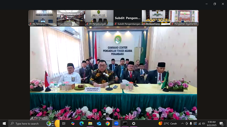 Taliwang, Senin 22 September 2025 - Mahkamah Agung Republik Indonesia (MA RI) secara resmi membuka pelaksanaan Uji Kepatutan dan Kelayakan (Fit and Proper Test) bagi calon pimpinan (Calon Ketua dan Wakil Ketua Pengadilan) di lingkungan Peradilan Agama seluruh Indonesia yang dilaksanakan pada hari Senin, 22 September 2025 pukul 08.00 – 09.00 WIB. Kegiatan ini di ikuti oleh Ketua Pengadilan Agama Taliwang, Ahmad Zuhri, S.H.I., M.Sy. dengan menggunakan media Virtual melalui aplikasi Zoom yang telah disiapkan oleh Direktorat Jenderal Badan Peradilan Agama Mahkamah Agung Republik Indonesia dengan mengusung tema “Melalui Seleksi Calon Pimpinan Pengadilan di Lingkungan Peradilan Agama Kita Tingkatkan Kualitas Kepemimpinan Badan Peradilan Menuju Peradilan Agama Modern Berkelanjutan”.