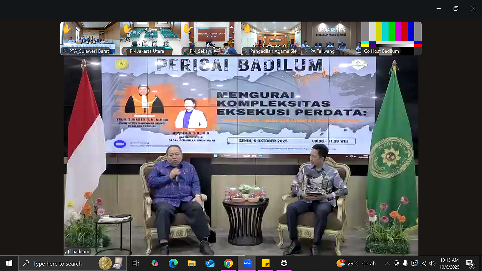 [Taliwang, 6 Oktober 2025] – Semangat kolaborasi dan keinginan untuk terus berkembang kembali ditunjukkan dalam acara Pertemuan Rutin Sarasehan Interaktif (PERISAI) Episode ke-10 yang diselenggarakan secara virtual melalui platform Zoom, pada Senin, 6 Oktober 2025 pukul 08.30 – 12.00 WIB. Acara yang mengusung tema Mengurai Kompleksitas Esekusi Perdata “Problematika, Solusi dan Prospek Pembaruan Hukum” ini berjalan dengan lancar.