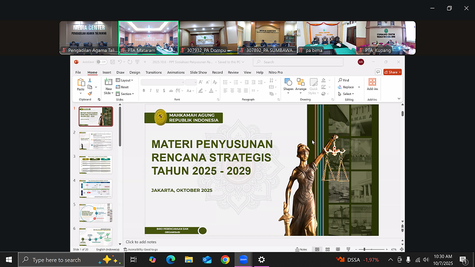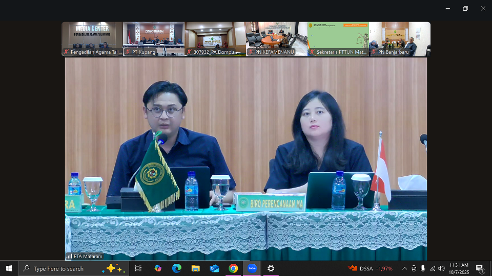 Kegiatan ini berlangsung pada hari Selasa, 7 Oktober 2025 pukul 10.30 WITA, dan diikuti oleh seluruh satuan kerja di wilayah hukum PTA Mataram, termasuk Pengadilan Agama Taliwang. Dalam kegiatan tersebut, Panitera dan Sekretaris PA Taliwang turut hadir secara online bertempat di Media Center Pengadilan Agama Taliwang.