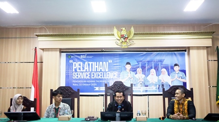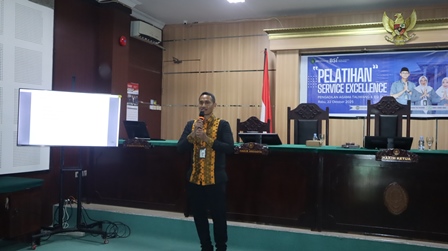 Pelatihan ini diisi oleh Perwakilan BSI Sumbawa, Bapak Muliadin beserta Tim, yang membawakan materi tentang service excellence atau pelayanan prima, dengan menekankan pentingnya sikap ramah, profesional, dan responsif dalam memberikan pelayanan kepada masyarakat pencari keadilan.