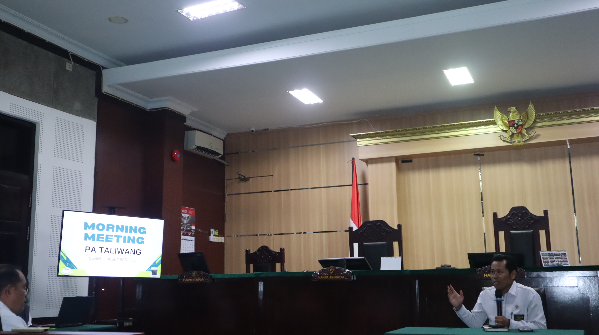 [Taliwang, 1 Desember 2025] - Pengadilan Agama Taliwang kembali melaksanakan kegiatan Morning Meeting pada pagi ini sebagai bagian dari upaya memperkuat budaya kerja yang profesional dan produktif di lingkungan peradilan. Kegiatan yang diikuti oleh seluruh aparatur ini berlangsung tertib dan penuh semangat.