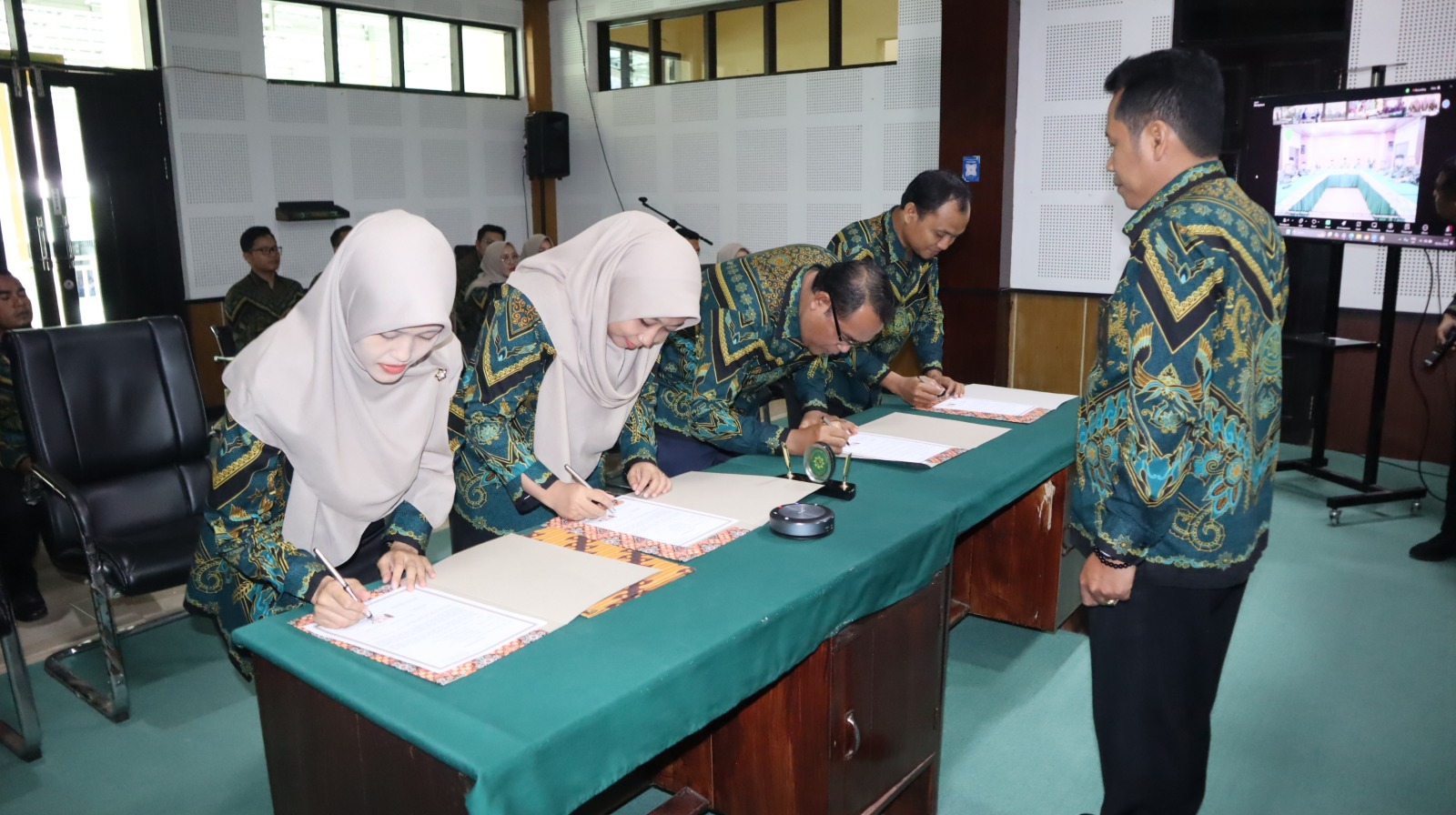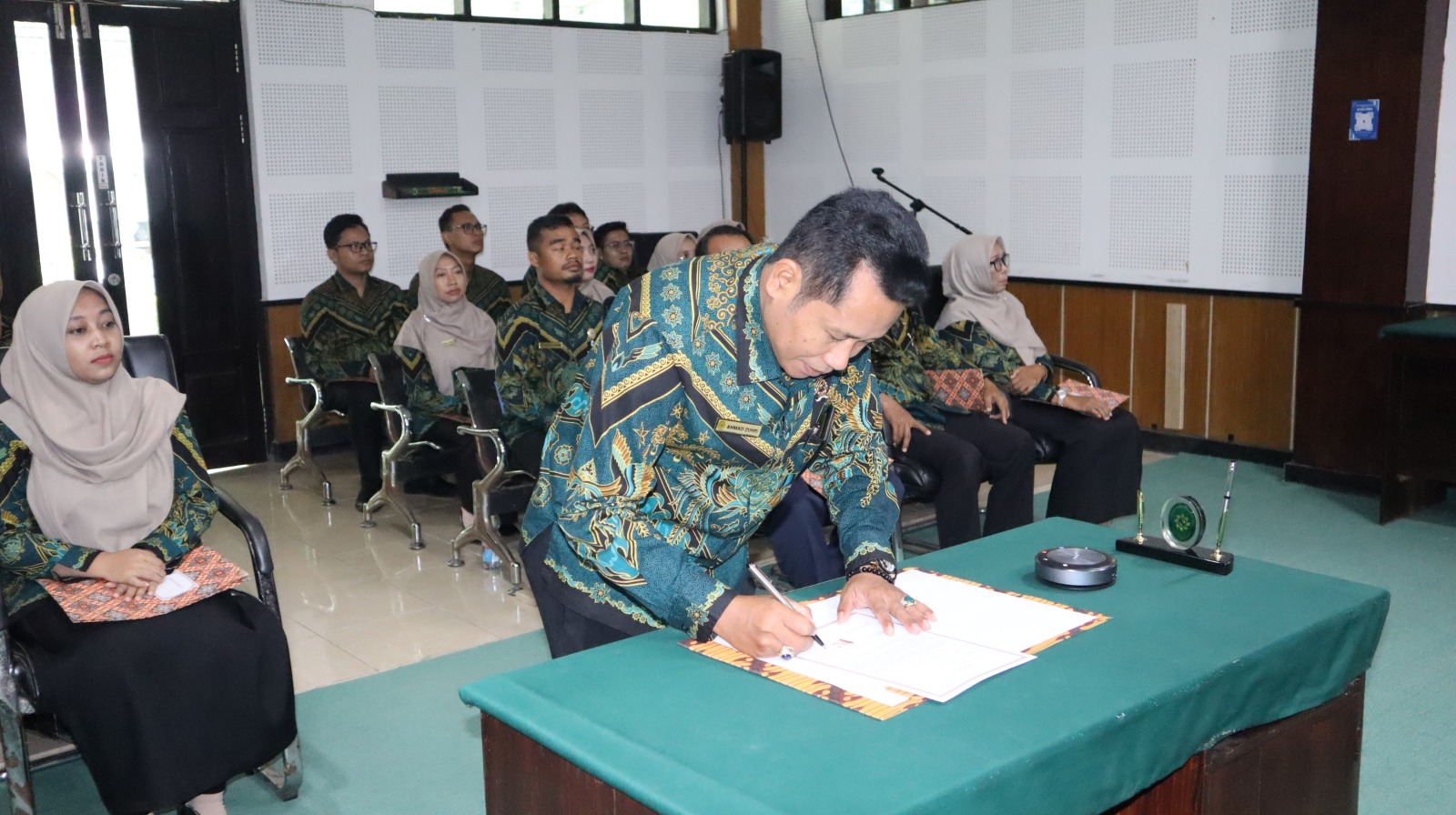 Selanjutnya dilaksanakan penandatanganan Pakta Integritas, yang diawali oleh Ketua Pengadilan Agama Taliwang dan disaksikan langsung oleh Ketua Pengadilan Tinggi Agama Mataram. Penandatanganan ini kemudian diikuti oleh seluruh pejabat dan aparatur Pengadilan Agama Taliwang sebagai simbol kesungguhan dalam mendukung terwujudnya peradilan yang bersih, transparan, dan bebas dari praktik korupsi, kolusi, dan nepotisme (KKN).