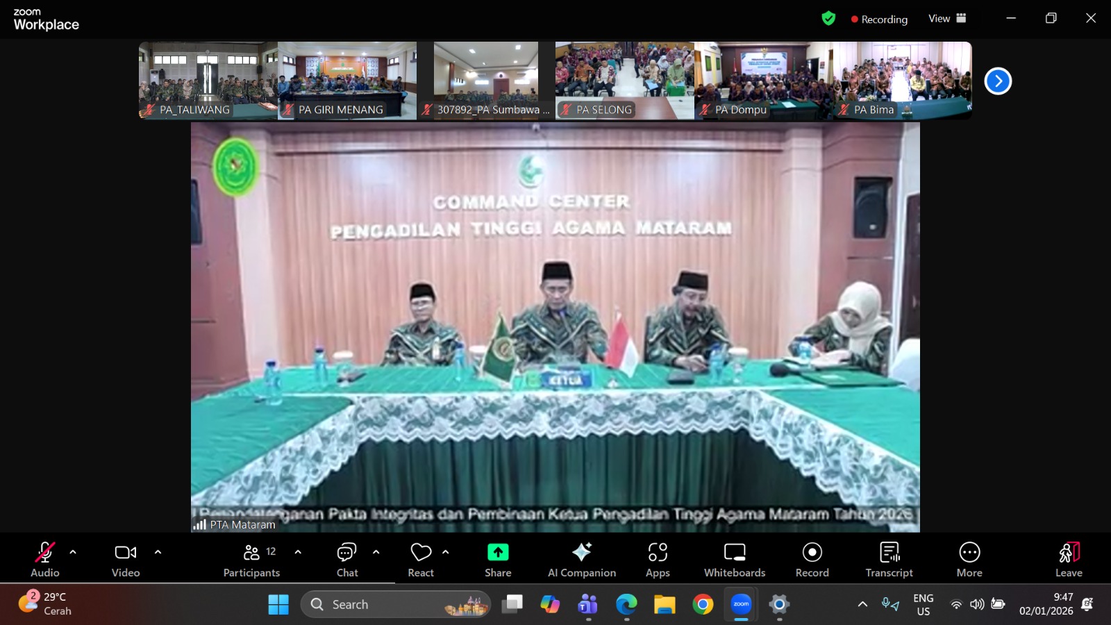 Taliwang, 2 Januari 2026– Pengadilan Agama Taliwang menyelenggarakan kegiatan Penandatanganan Pakta Integritas dan Pembinaan dari Ketua Pengadilan Tinggi Agama (KPTA) Mataram YM. Drs. Moh.Yasya, S.H., M.H., bertempat di Ruang Sidang Pengadilan Agama Taliwang, pada pukul 09.00 WITA.