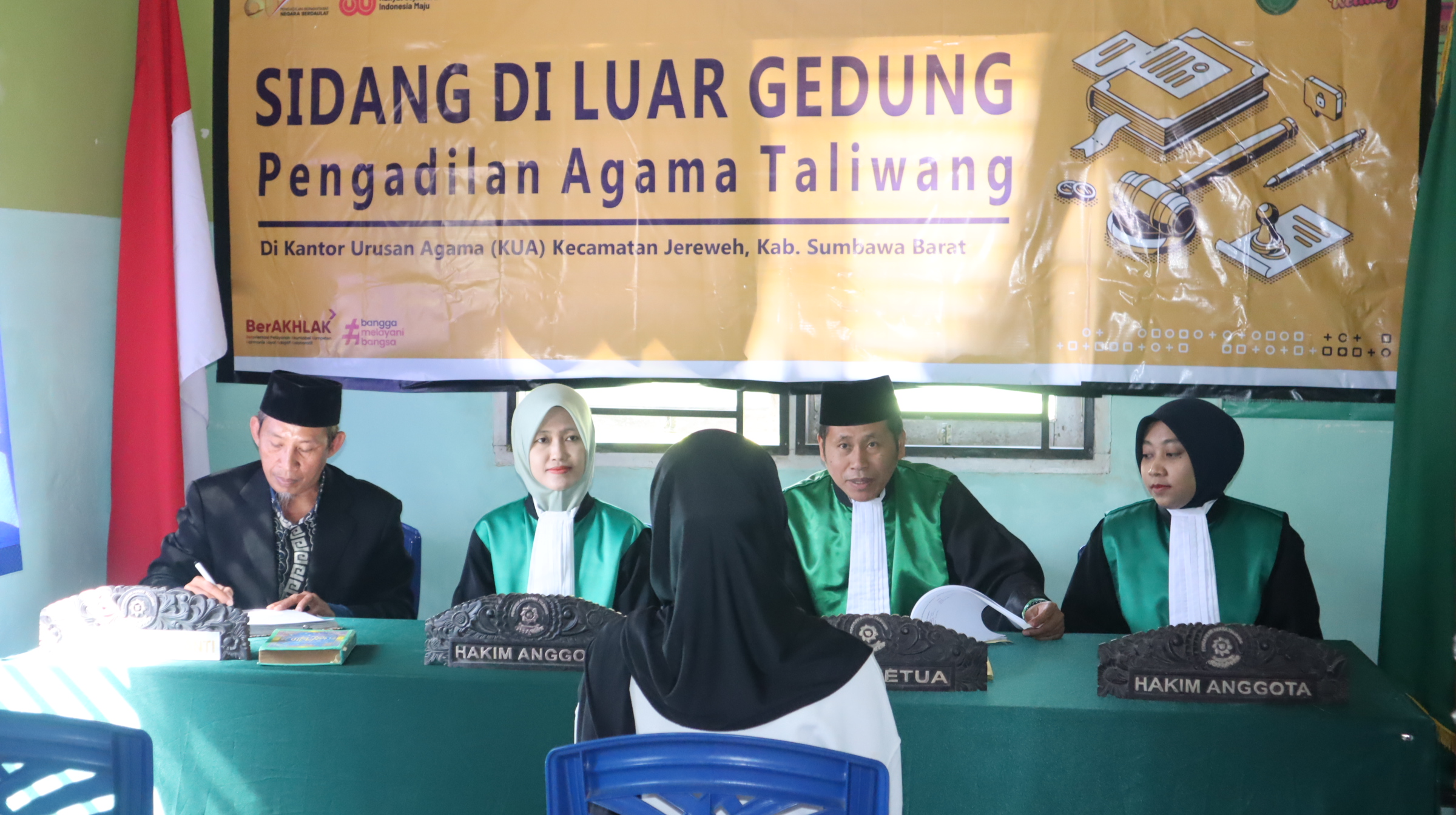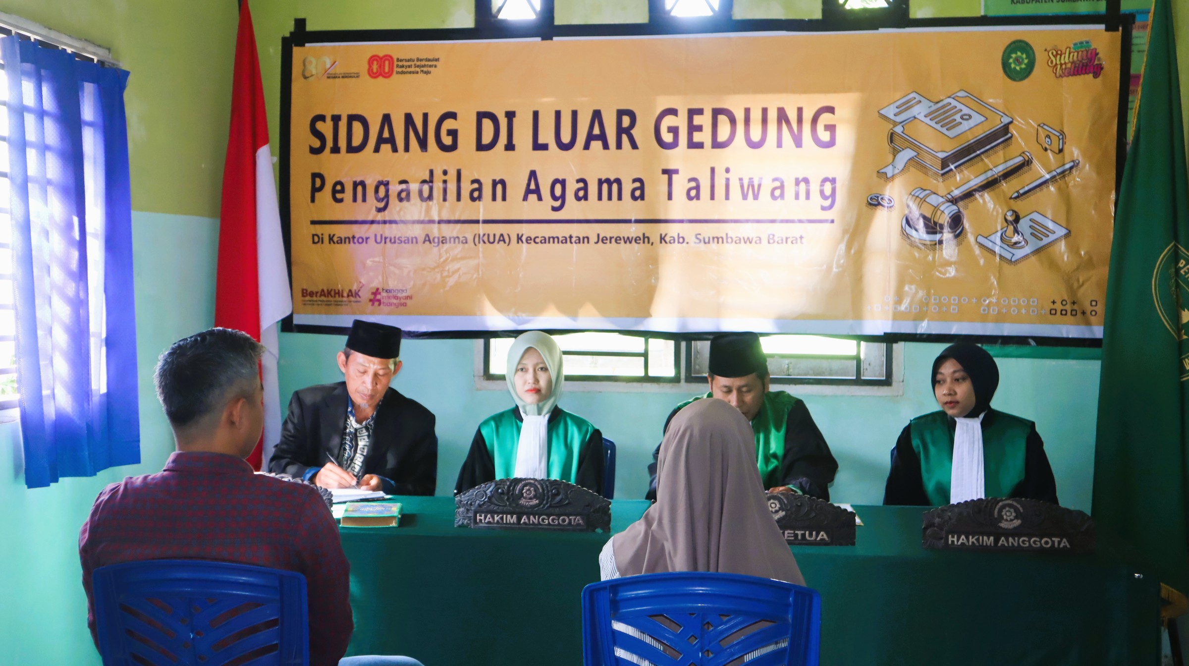 Taliwang, Kamis 21 Agustus 2025 – Pengadilan Agama (PA) Taliwang kembali menggelar sidang keliling untuk yang ke-10, kali ini bertempat di Kantor Urusan Agama (KUA) Kecamatan Jereweh, Kabupaten Sumbawa Barat (KSB). Sidang tersebut dipimpin oleh Ketua PA Taliwang sekaligus Ketua Majelis Ahmad Zuhri, S.H.I., M.Sy dan sebagai Hakim Anggota Masning Fatimatul Azdiyah, S.H.I., & Yumna Hazna Azizah, S.H., dengan agenda mengadili dua Gugatan perceraian.
