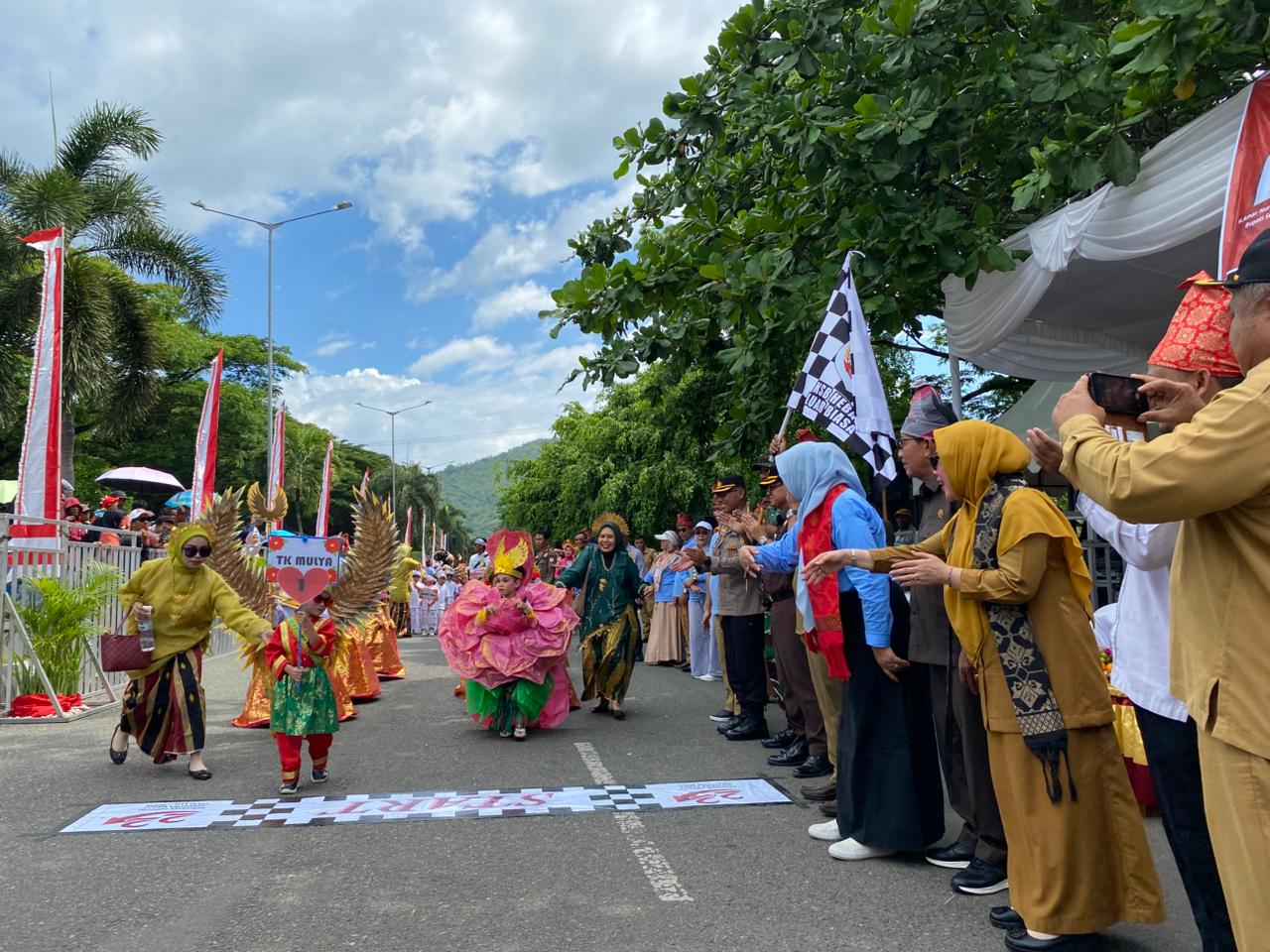 Karnaval tahun ini diikuti oleh ratusan peserta dari berbagai unsur, mulai dari pelajar, organisasi masyarakat, hingga instansi pemerintah dan swasta. Dengan mengenakan kostum adat, pakaian kreasi budaya, hingga busana bertema pembangunan daerah, para peserta menampilkan kreativitas luar biasa yang memukau ribuan penonton yang memadati sepanjang rute karnaval.